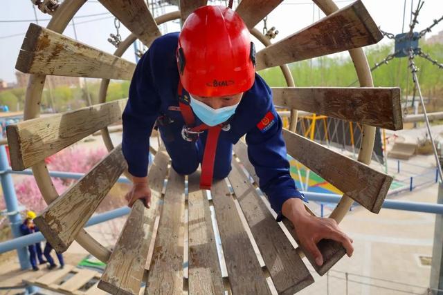 高空骑行。此项目位于10米多高钢梁处,队员需克服内心恐惧,在多重保护措施作用下,独自骑行单车过5米钢梁,对队员勇气与魄力的考验程度极高。
