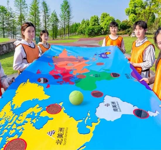 这是一个团队合作项目,主要培养团队配合协作能力,加强团队精神,感受团队成员之间的沟通方式与行为方式的变化,提升团队士气,激发成员的热情。团队成员需手拉世界球地图边缘,通过全队配合协作使世界球按照一定路线,从起点到达终点,高尔夫球在行进过程中不允许掉落。如出现掉落的情况,则需返回起点重新挑战。