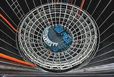 “五一”假期,位于广东省开平市金鸡镇的江门中微子实验站进入中心探测器安装的关键阶段。地下700米坑洞底部,工人正在施工,用大型不锈钢构件逐层向上拼装一个巨大的球形网壳。网壳拼装完工后,直径达41米,重达800多吨,将成为整个中心探测器的主结构,核心设备都安装其上。