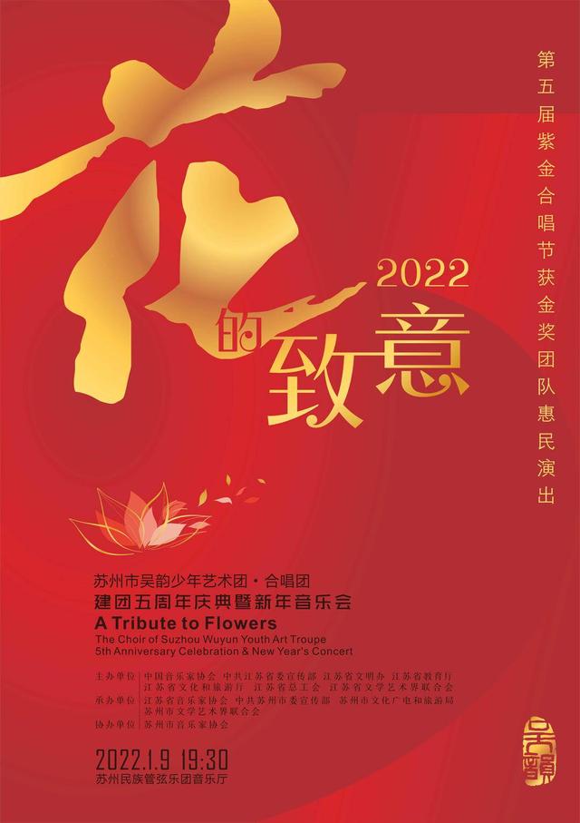 1月9日晚,2022年吴韵少年艺术团合唱团“第五届紫金合唱节获金奖团队惠民演出”——“花的致意”新年音乐会在苏州民族管弦乐团音乐厅成功举行。